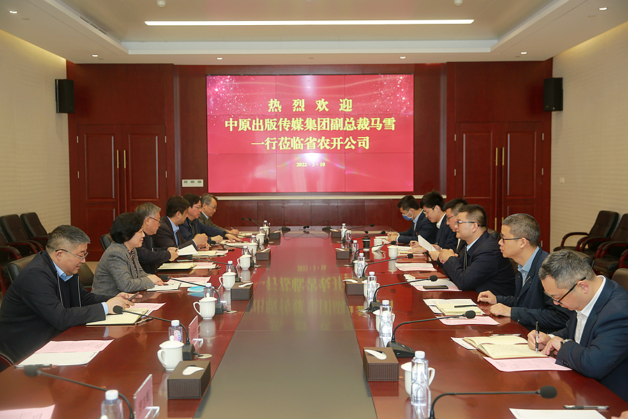 3月10日上午,中原出版传媒集团党委委员、董事、副总裁马雪、财务投资部主任李永州、产业发展部主任李红伟等一行到访公司交流洽谈。公司总经理张淑杰会议前会见了马雪一行,副总经理刘旸、投资管理部经理马志明及相关子公司负责人参加座谈。